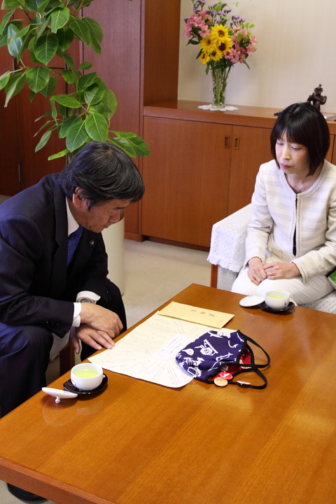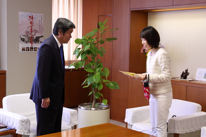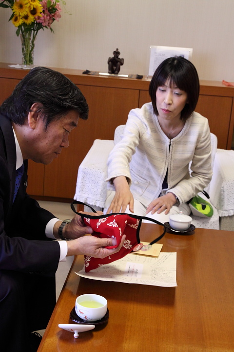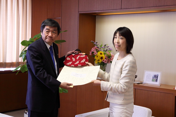 おかげさまで 盛さん企画の100人のバッグプロジェクト 八戸市小林市長へ義援金をわたして